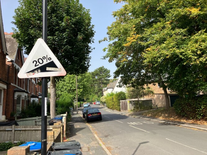 The road has become known as the “steepest street” in London among residents, with a sign warning people of the harsh 20 degree incline at the bottom.