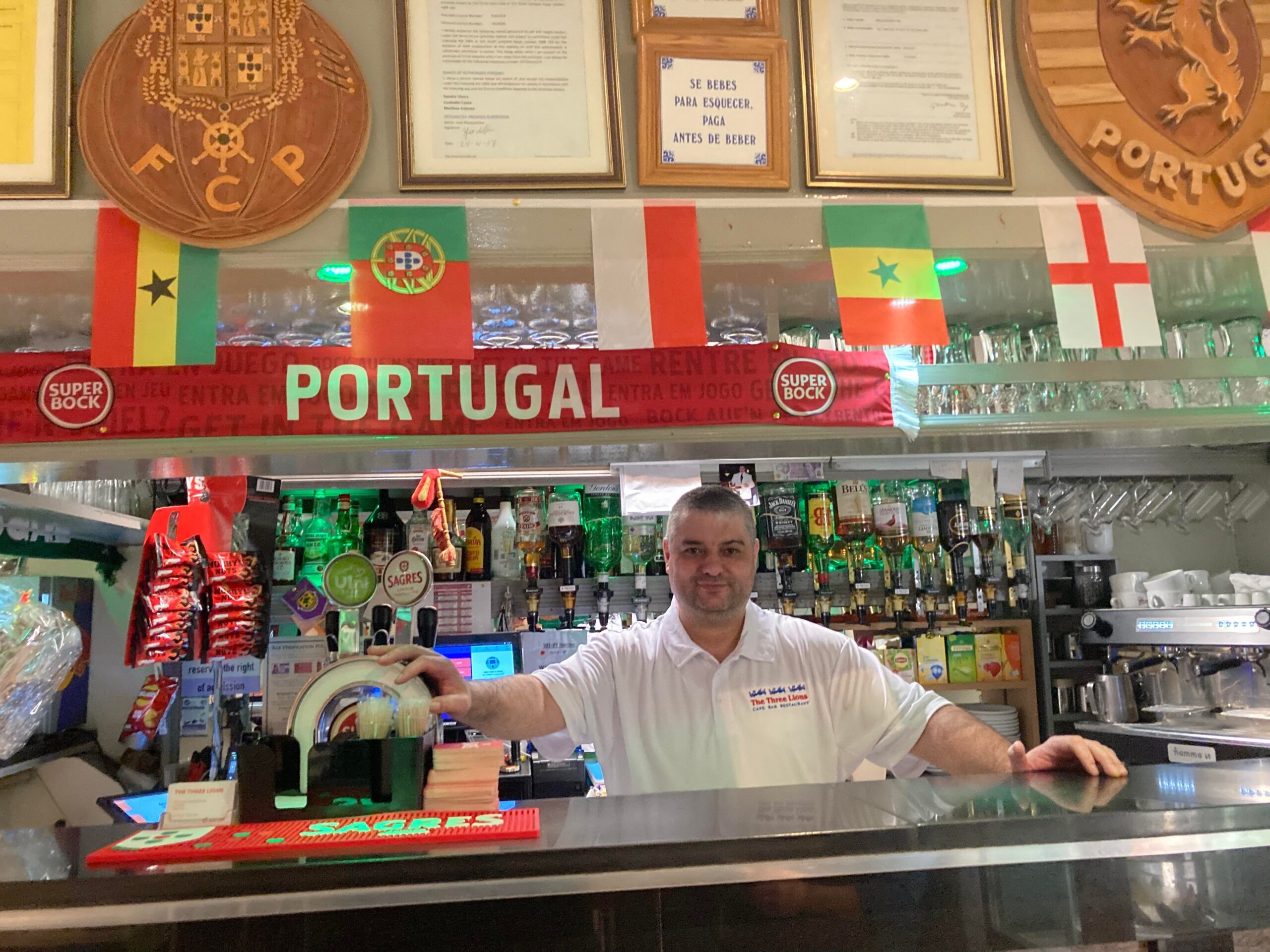 Pictured top: Jose Albuquerque behind the bar at The Three Lions Portuguese restaurant in Stockwell (Picture: Robert Firth)