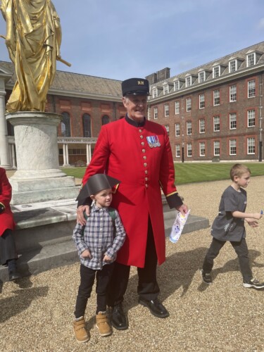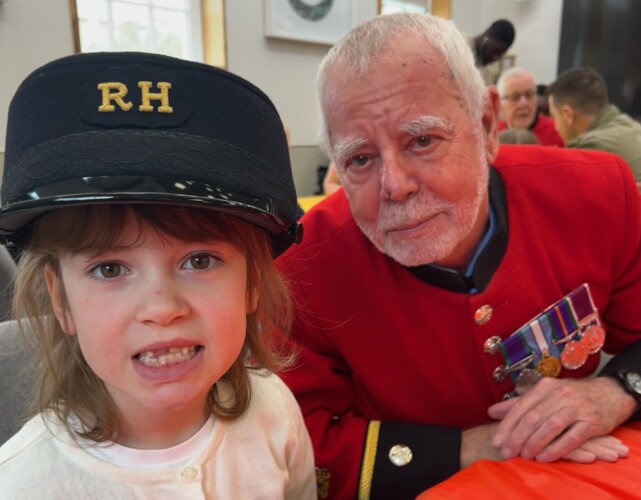 Funded by the National Lottery Heritage Fund as part of the Hospital’s Soane Stable Yard Project to open up the heritage of the Grade II listed site, the children and Pensioners exchanged stories about their own experiences with military life.
