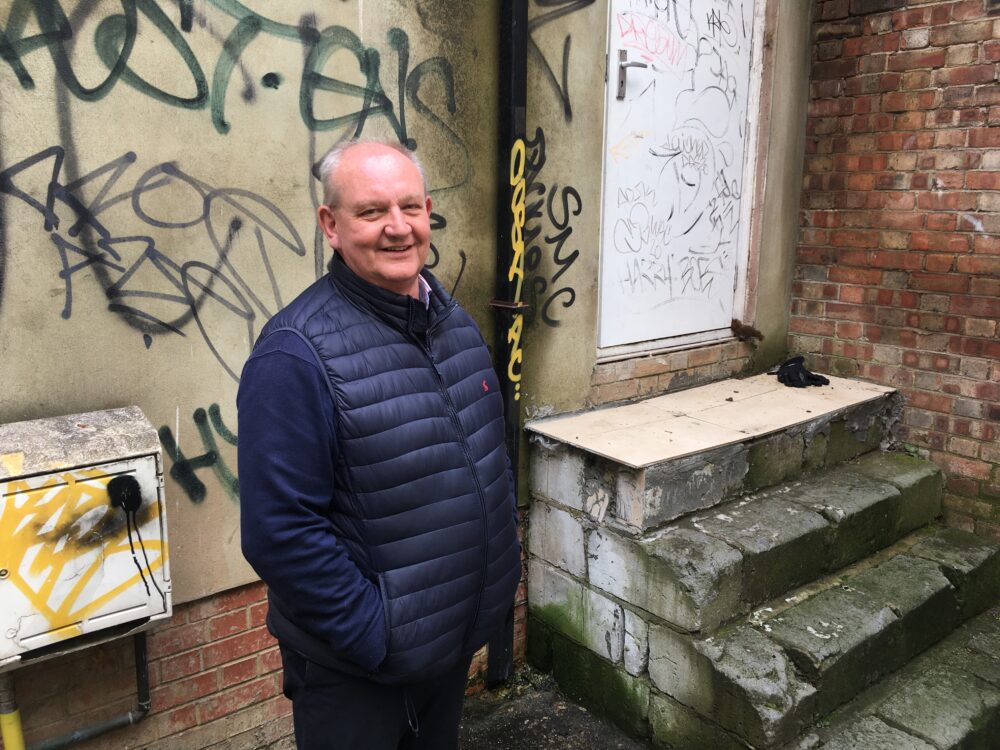 PC Cooke’s skipper, Sergeant James Burgess, reveals that people gathering at a homeless hostel in Market Lane were putting a huge amount of stress on his officers, until the building was recently leased to arts organisation Kindred Studios.