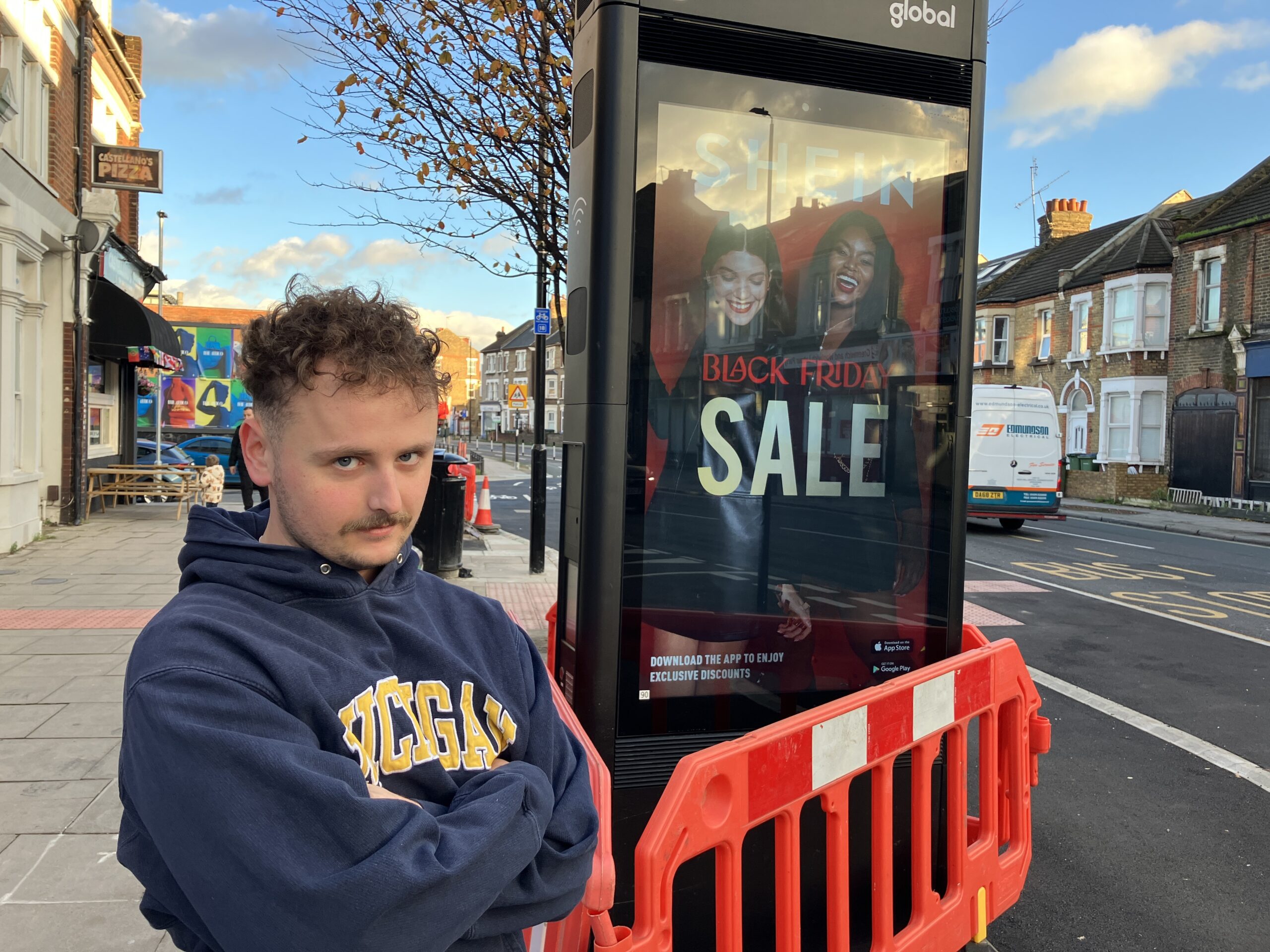 Pictured top: Matt Deane, a local of East Greenwich, shown in front of the advertising board on Woolwich Road (Picture: Joe Coughlan)