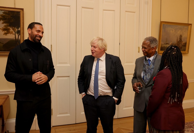 Rio Ferdinand, Boris Johnson and Richard Taylor in a reception for the collective at No 10