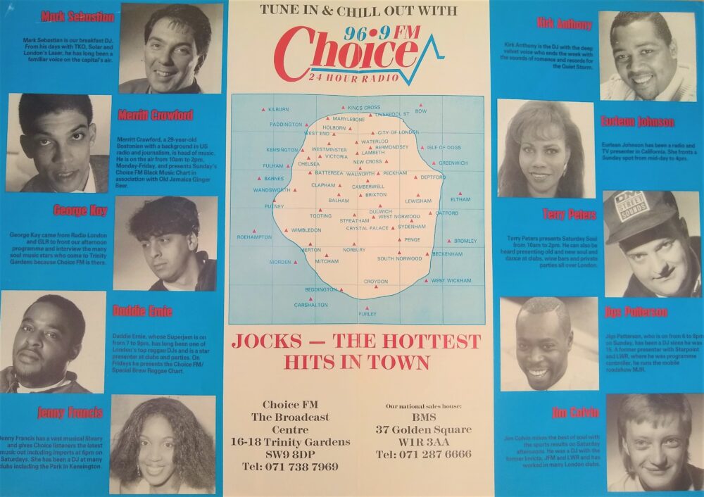 Known as Capital Xtra since 2013, Choice FM was launched in Brixton on 31 March 1990 and championed black music of all genres for twenty-three years on 96.9 FM.