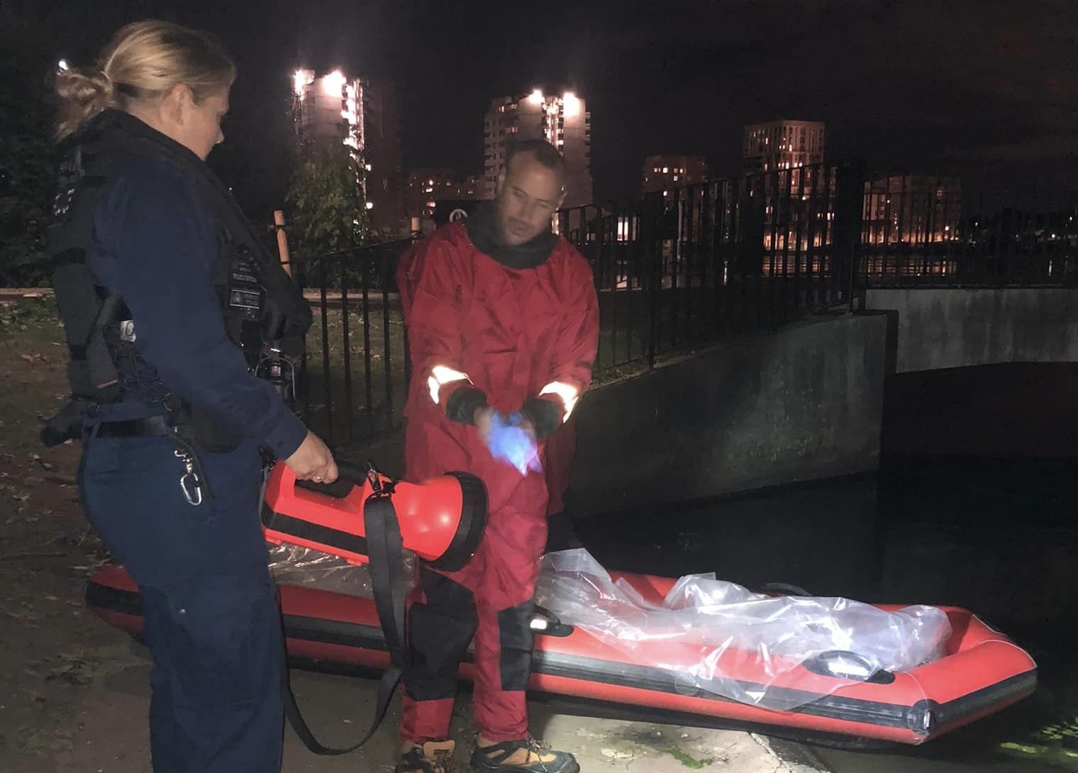 Pictured top: The Marine Policing Unit recovers dogs from Southmere Lake (Picture: Missing Paws UK)