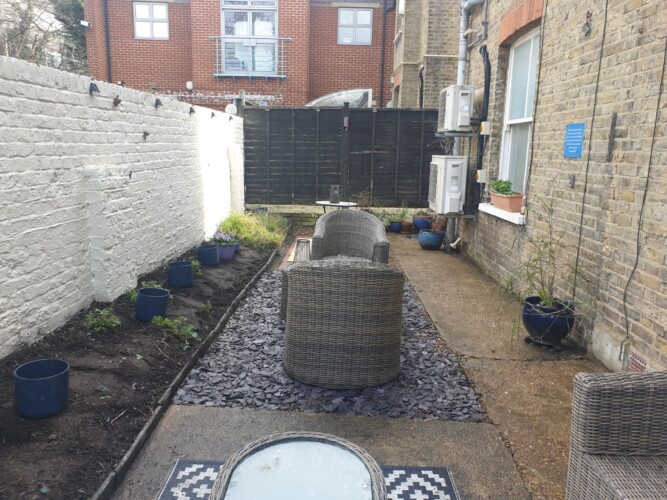 The work involved substantial pruning, cleaning garden furniture, painting and the installation of new planters and solar lights.