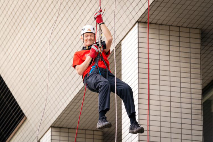 Pictured top: Nigel Haselden abseils down Guy’s and St Thomas’ Hospital (Picture: Rose Bainbridge Photography)