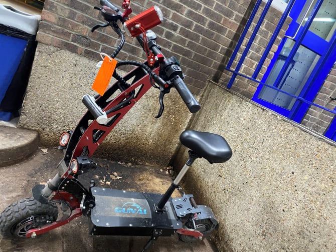 It was found to have a 5600W electric motor, capable of over 50mph and even had a horn and indicators fitted.