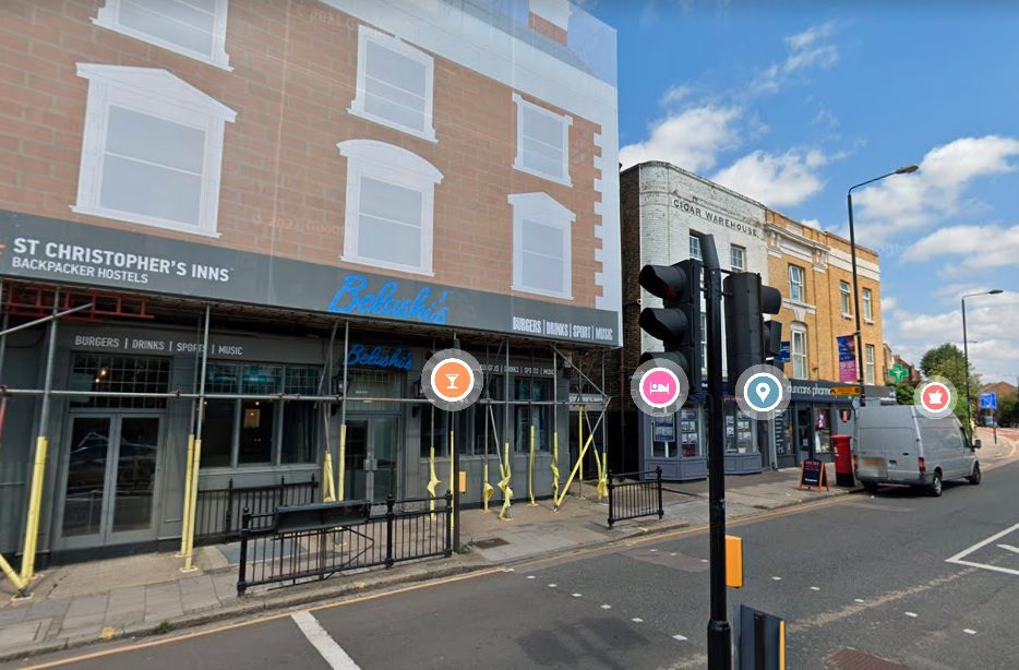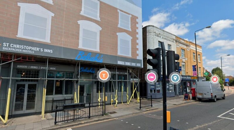 Pictured top: Belushi’s bar in Greenwich High Road, close to where the man was stabbed (Picture: Google Street View)