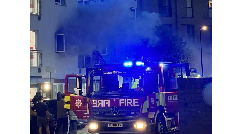 Four fire engines and about 25 firefighters were called to a fire at a block of flats in Cabot Close, Croydon yesterday evening.