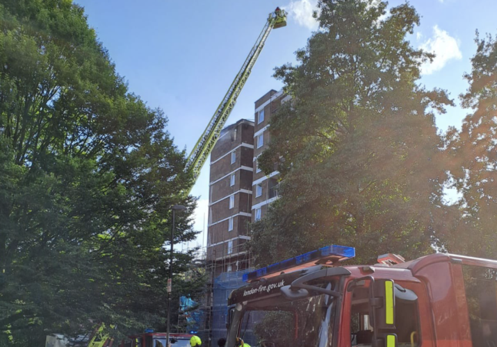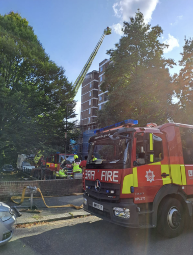 A tenth floor flat was destroyed by fire along with part of the building’s roof.