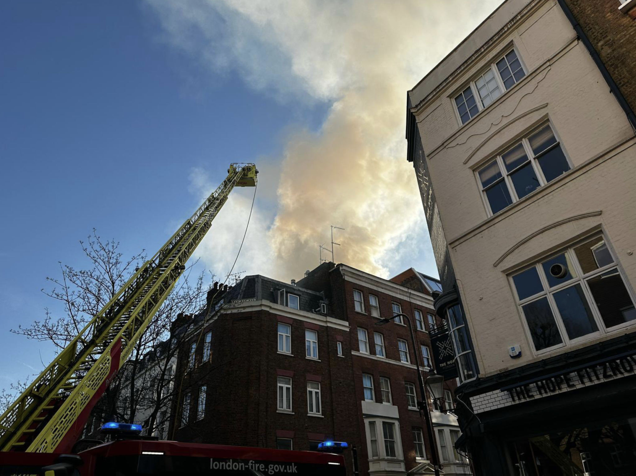 Six fire engines and about 40 firefighters tackled the blaze at a mixed-use building in Tottenham Street, near Goodge Street Tube station.