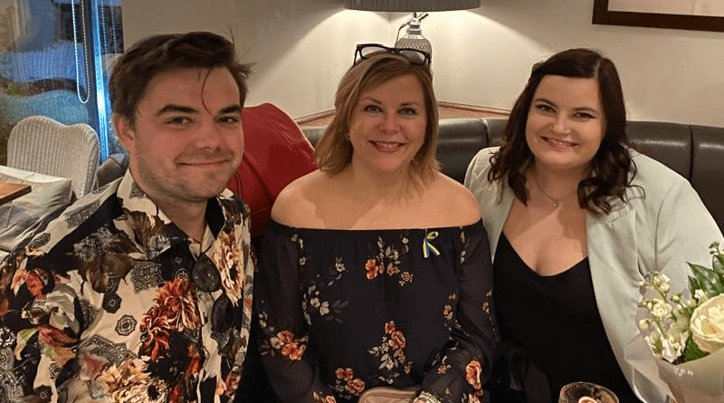 Pictured top: Deb with her children Adam and Kate D’Aubney (Picture: Brain Tumour Research)