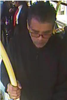 As the bus stopped at Wimbledon Road the suspect used his left hand to touch the victim inappropriately and brushed his hand over her leg.
