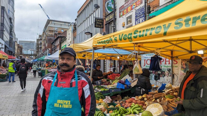 Pictured top: Jose Joseph outside his fruit and veg stall in Surrey Street Market (Picture: Harrison Galliven)