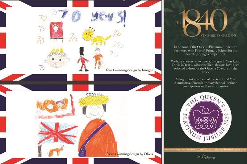 Meanwhile, children at Fircroft Primary School, Tooting Beck, designed a celebratory hoarding at The 1840, the heritage development in nearby St George’s Gardens, in recognition of the Queen’s 70 years of service.