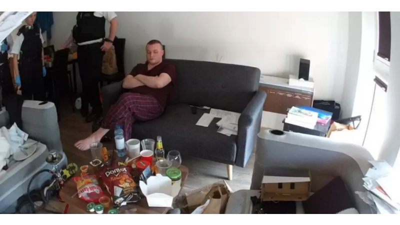 Pictured top: Mark Gould in his Greenwich flat during the raid by Trading Standards officers (Picture: Premier League/Hammersmith and Fulham council)