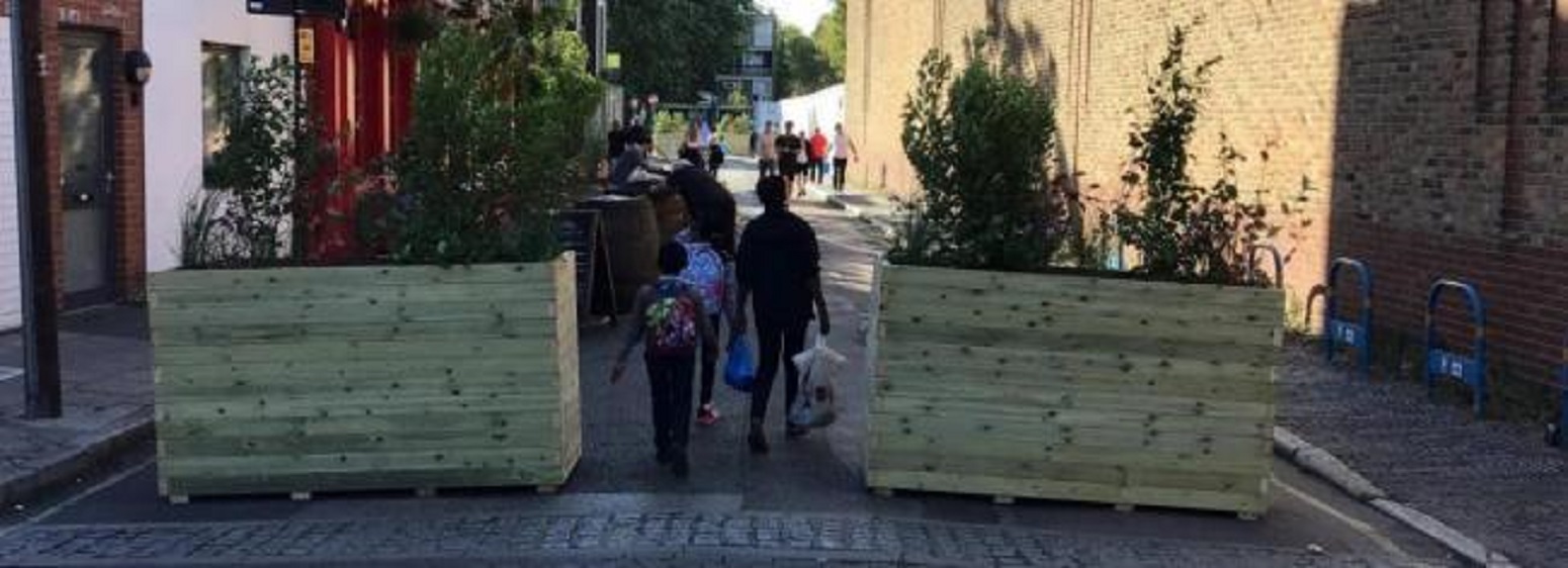 Pictured top: Barriers will be installed in Lewisham to aid social distancing and promote walking and cycling