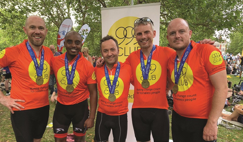 The team of three women and nine men took part in the Prudential RideLondon-Surrey 100 event earlier this month for the 999 Club, which runs a night shelter and drop-in day centre for homeless people in Lewisham.