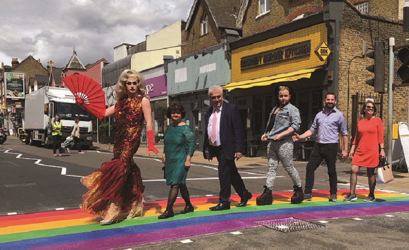 Merton council installs Rainbow Crossing in Wimbledon Broadway to celebrate the town’s inclusivity
