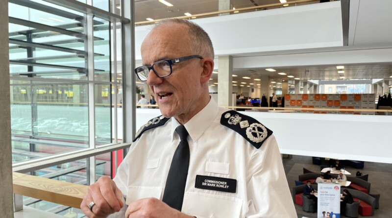 Pictured top: Met Commissioner Sir Mark Rowley, speaking to reporters this week at Hendon Police College (Picture: Noah Vickers)