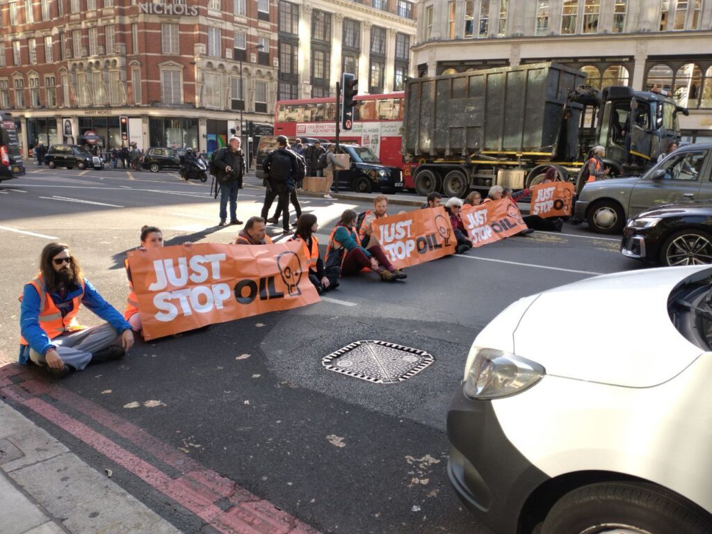 Just Stop Oil protesters returned to London’s streets on Wednesday morning, blocking a road near to Downing Street.