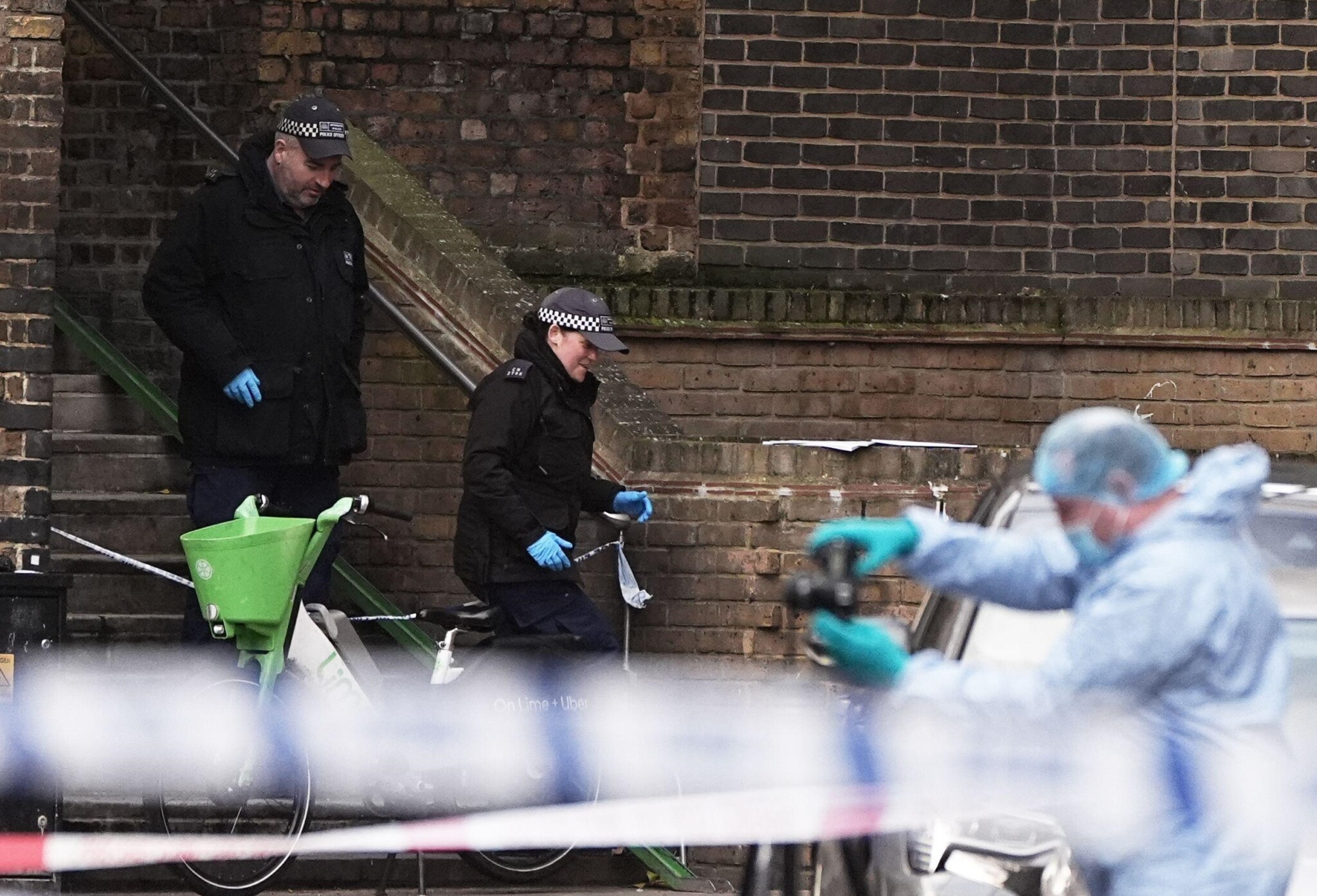 Pictured top: Police officers at the scene in Southern Row (Picture: PA Images/Alamy Stock Photo)