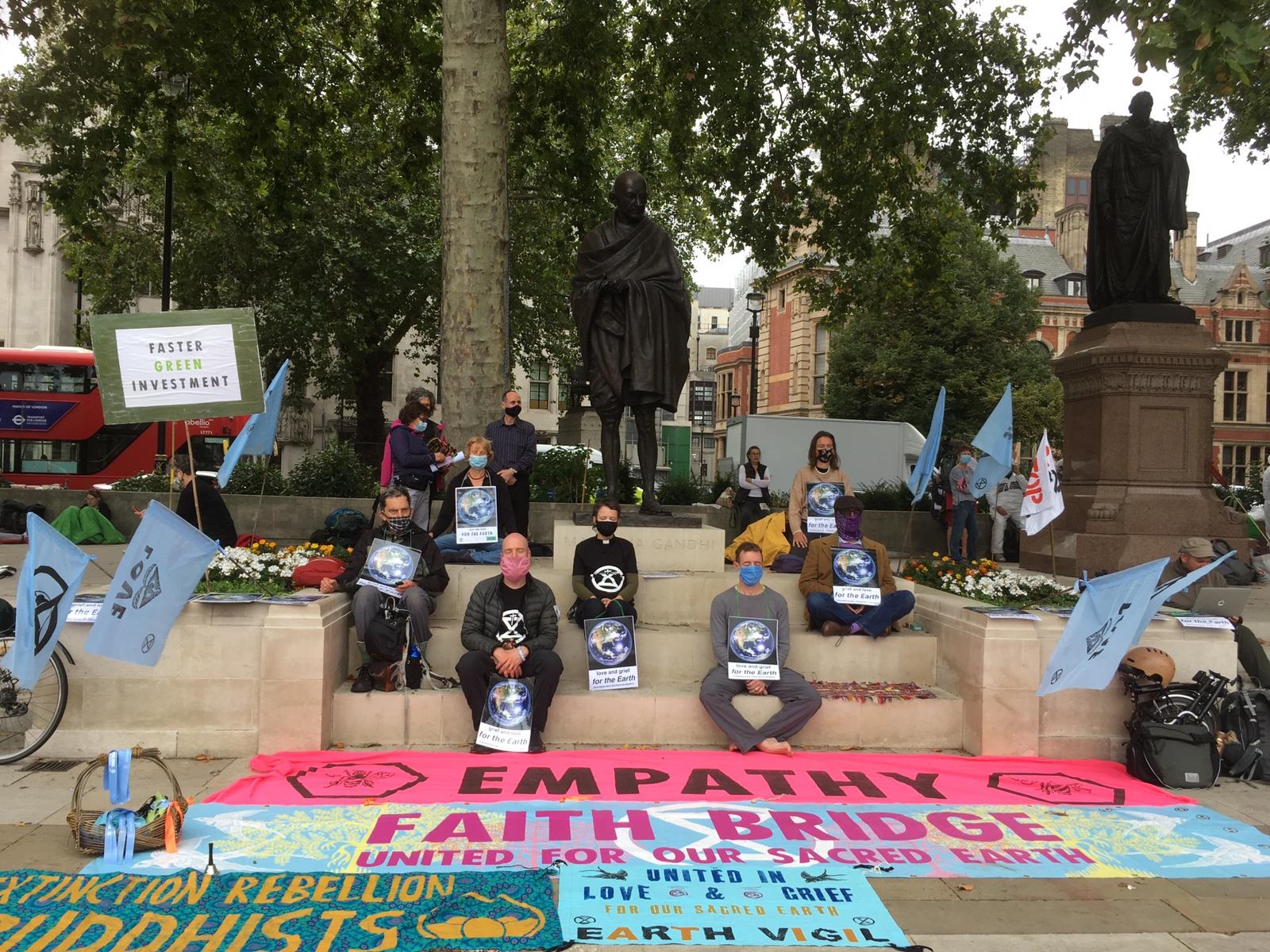 Christian Climate activists joined up with other faiths including XR Jews, XR Buddhists and XR Muslims to make a Faith Bridge.