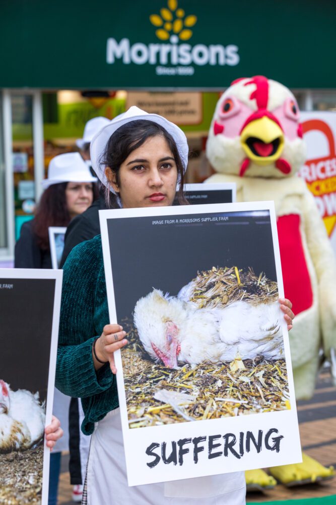 The protest group said a typical chicken sold in Morrisons is a fast-growing breed known as a “Frankenchicken”.