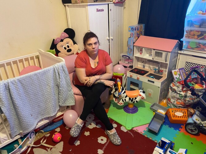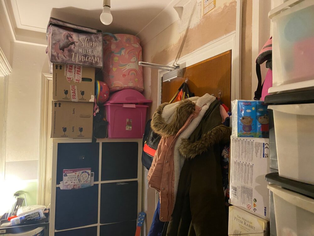 Ellie said there was not enough space for her children to play safely because they were forced to store their belongings on the floor and in piles in the hallway and bathroom.