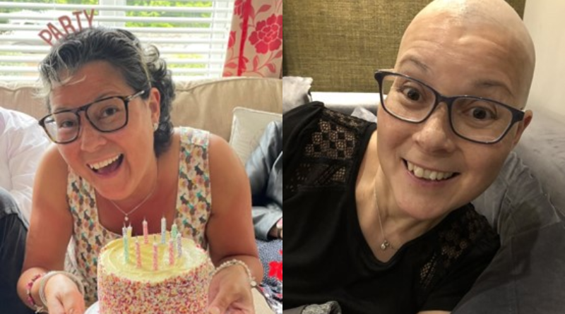 Pictured top: (L-R) Lin Limbrey after cancer and during her cancer treatment (Picture: Lin Limbrey’s family)
