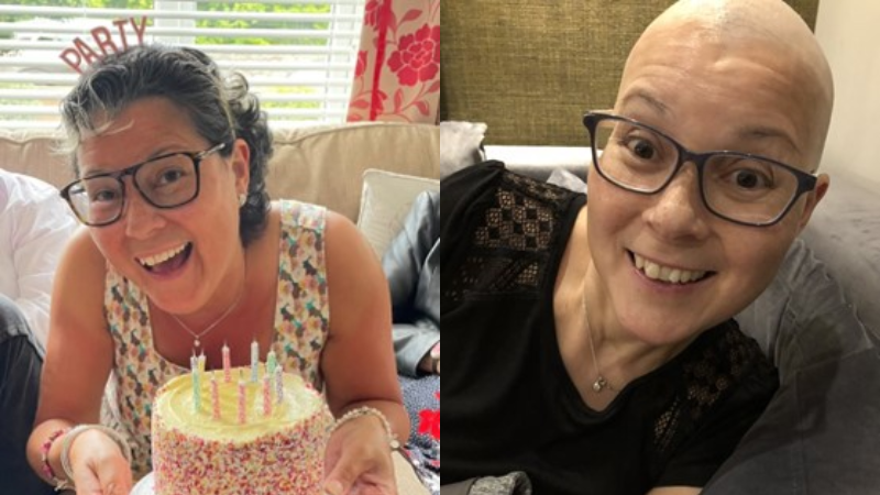 Pictured top: (L-R) Lin Limbrey after cancer and during her cancer treatment (Picture: Lin Limbrey’s family)