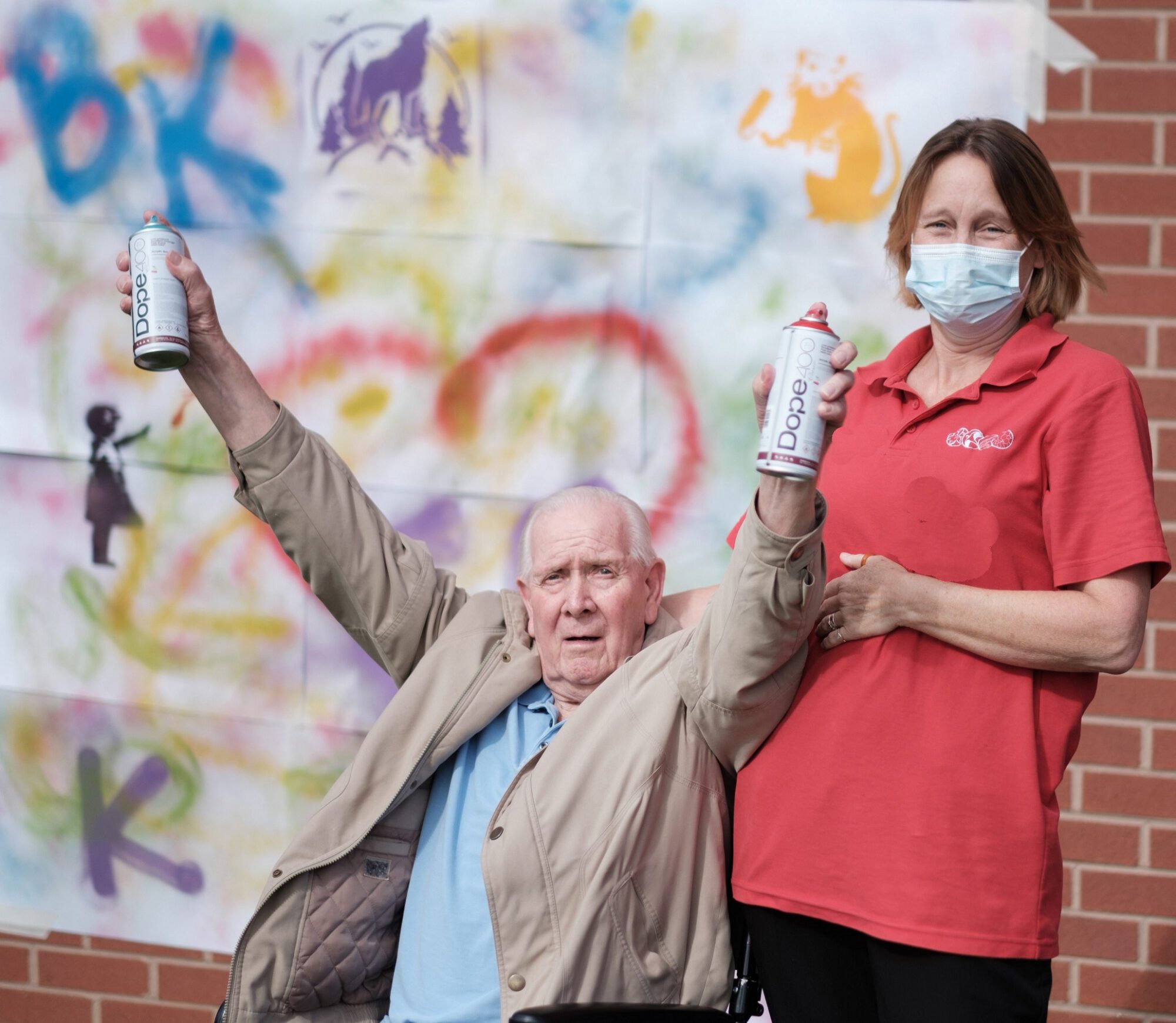 Pictured top: Resident Joseph Russell with team member Heather Neaum after another session of graffiti art (All Pictures: Four Seasons Health Care Group)