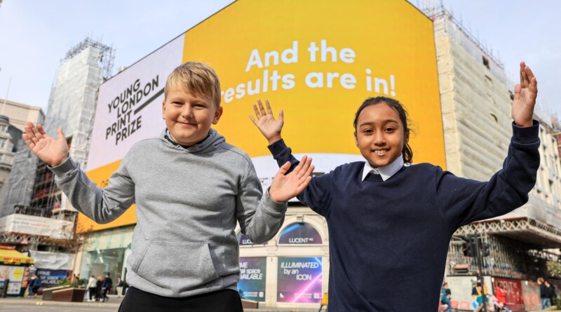 Pictured top: From left, last year’s runner up of Young London Print Prize, Deimota Pocuis, from Discovery Primary School in Thamesmead, and the winner Sara Ahmed, a Year 6 pupil from Mayflower Primary School in Tower Hamlets (Picture: Young London Print Prize)
