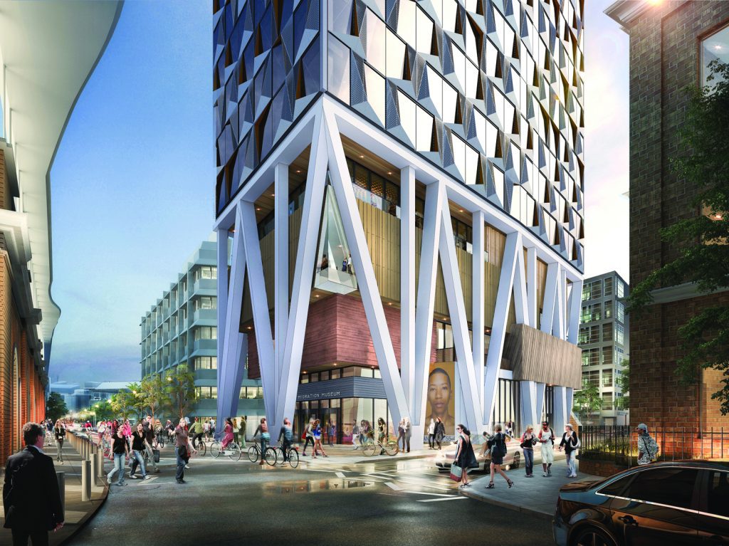Developers Greystar want to build a 45-storey block of flats for students and a base for the Migration Museum below it.