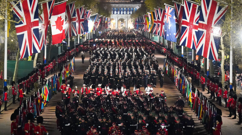 Hundreds of servicemen and women from the military, navy and the RAF completed the procession route in the shadow of Big Ben, briefly stopping in Whitehall and standing in silence.