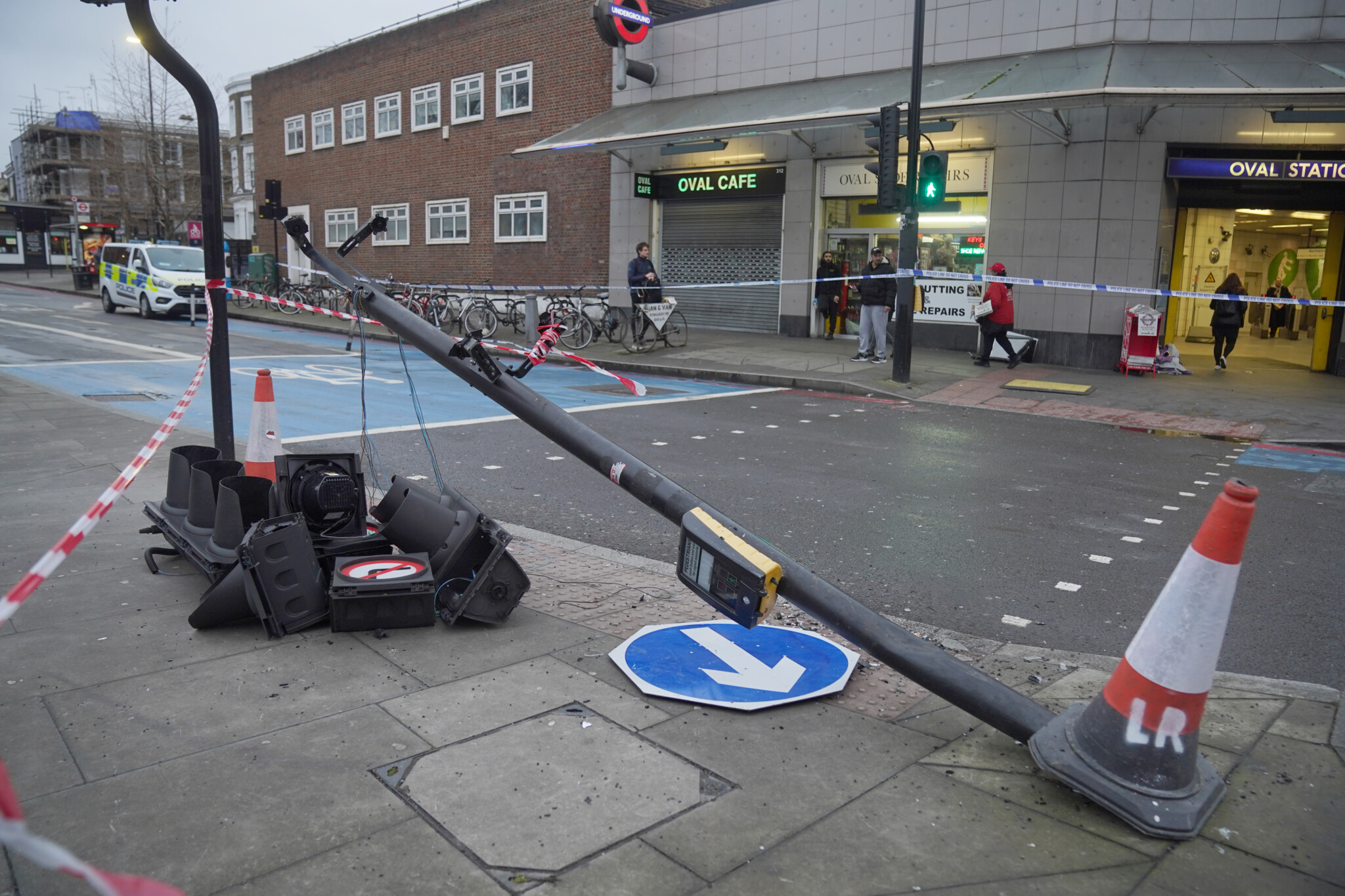 Pictured top: The scene outside Oval Tube station after the collision yesterday (Picture: Lucy North/PA)