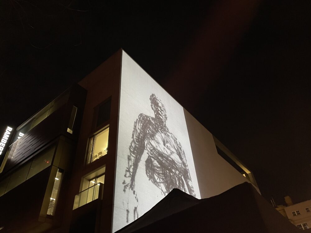 The artwork to mark a decade since her death, called Breathe, was projected onto the side of the Rambert Building, by Waterloo Bridge, on Wednesday evening.