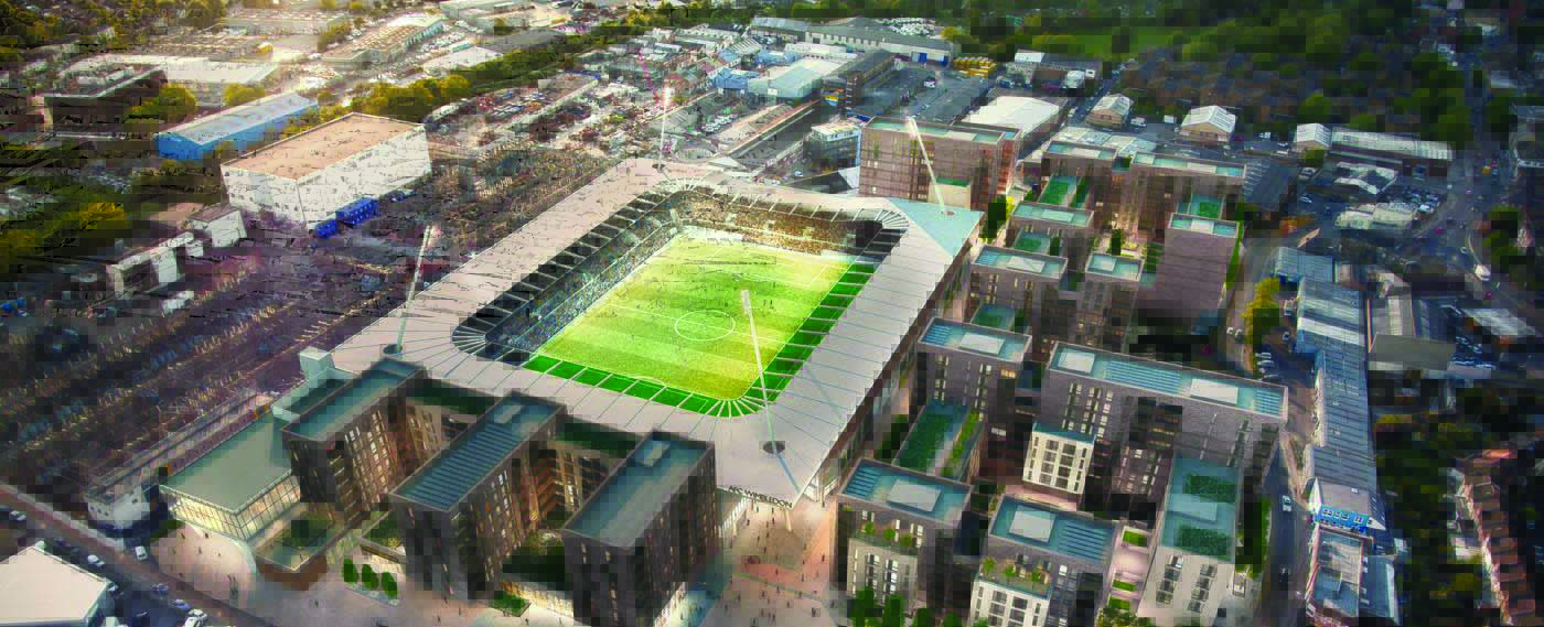 The development includes more than 630 new flats as well as a modern new football ground. The project was approved by Merton council in 2017 and AFC Wimbledon played its first game at the new Plough Lane at the end of 2020.