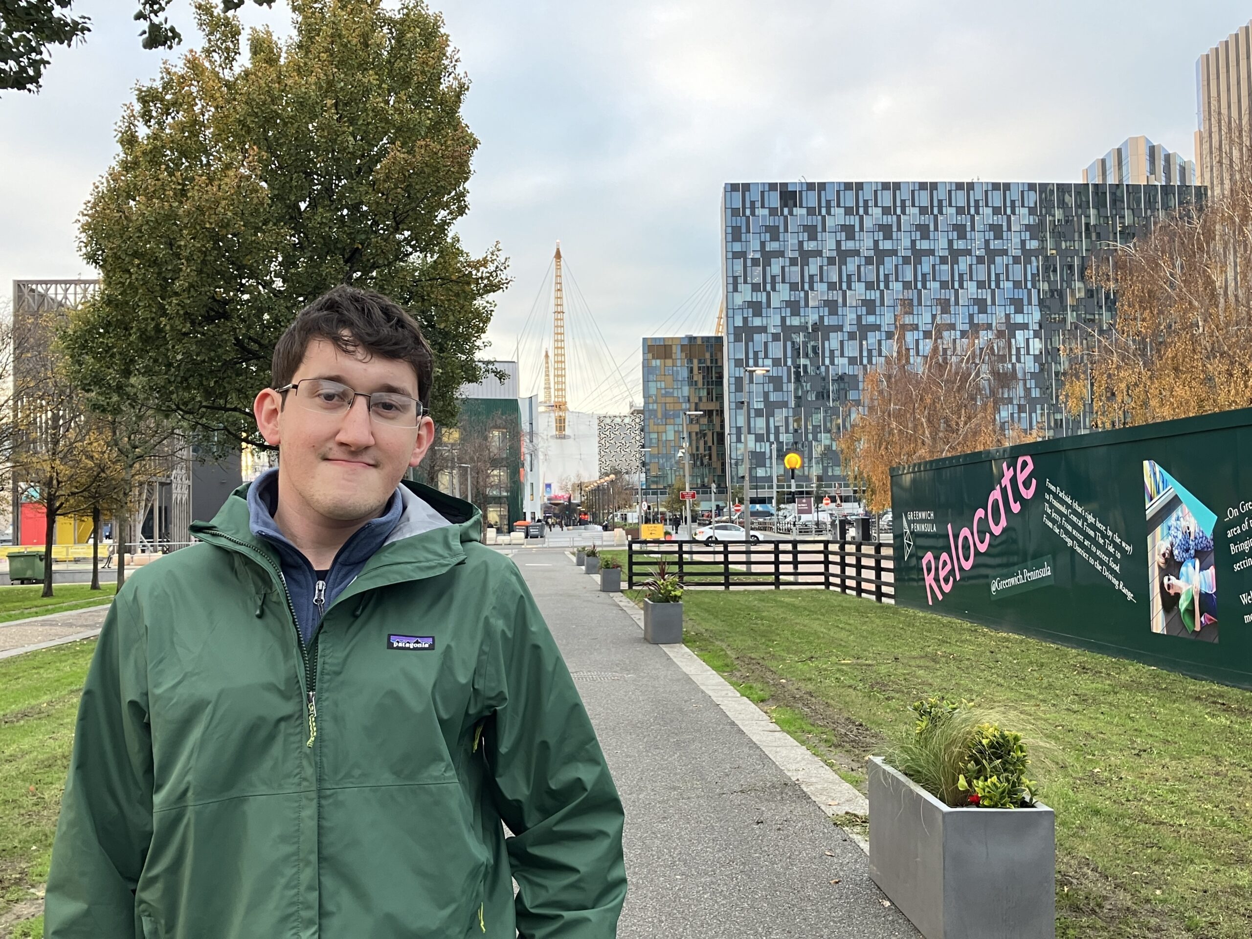 Pictured top: Jack Gillman shown in front of Peninsula Square in North Greenwich (Picture: Joe Coughlan)