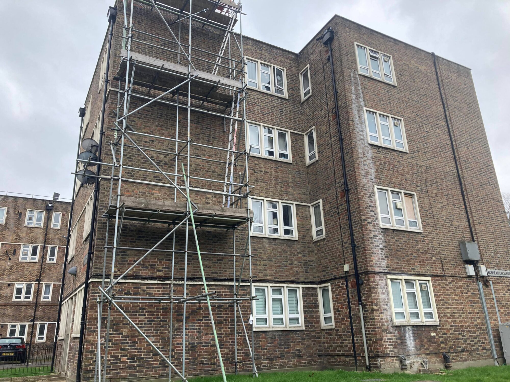 Locals say their blocks are already crumbling from 70 years of wear and tear, with window frames dropping off and ceilings leaking. They say the council should fix the existing flats before building more above.