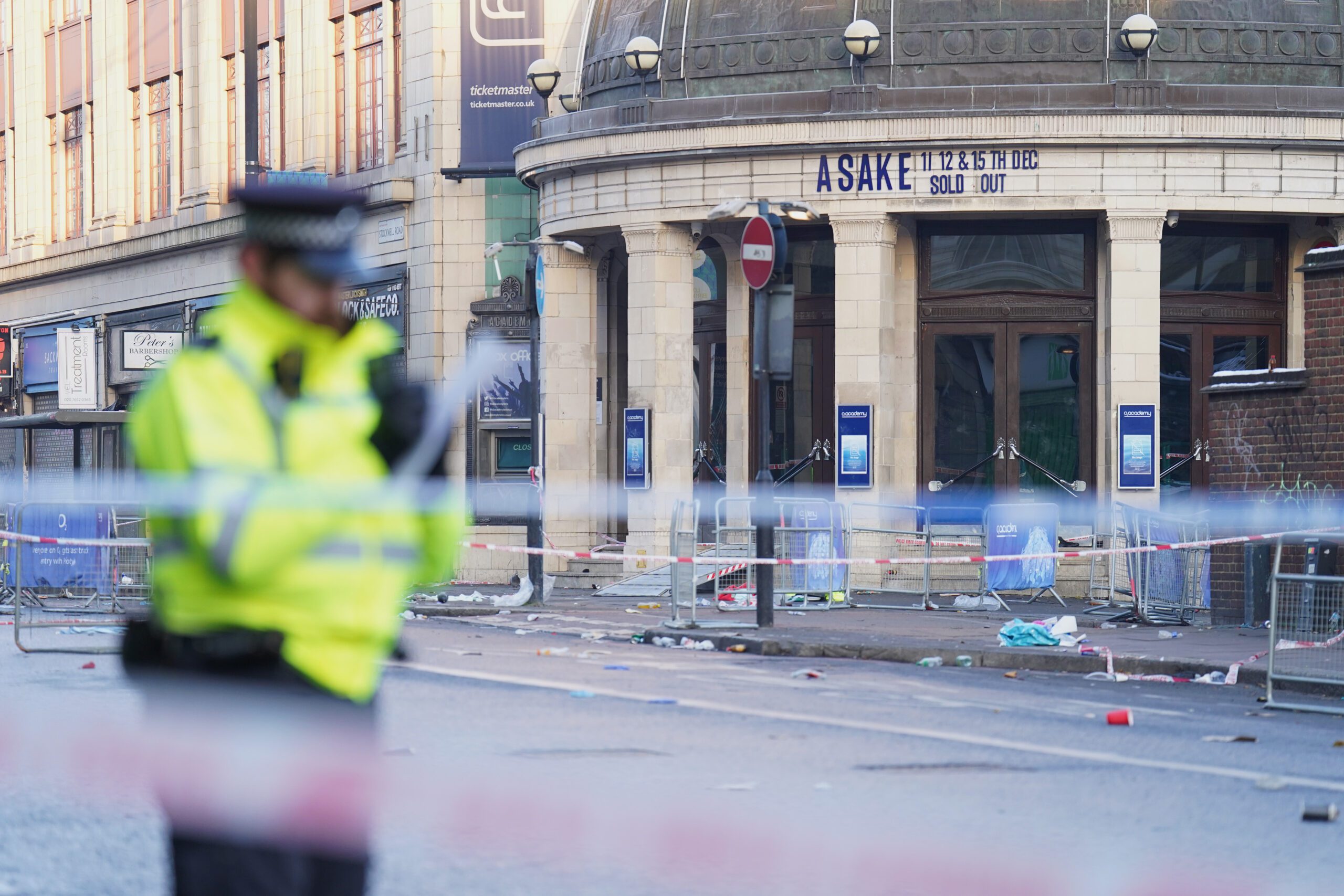 Pictured top: The scene outside the O2 Academy Brixton on December 16, the day after the crowd crush (Picture: James Manning/PA Wire/PA Images)