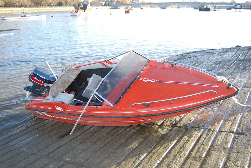 Speedboat owned by Web designer Jack Shepherd who was found guilty of killing his date, Charlotte Brown, in an accident on the Thames.