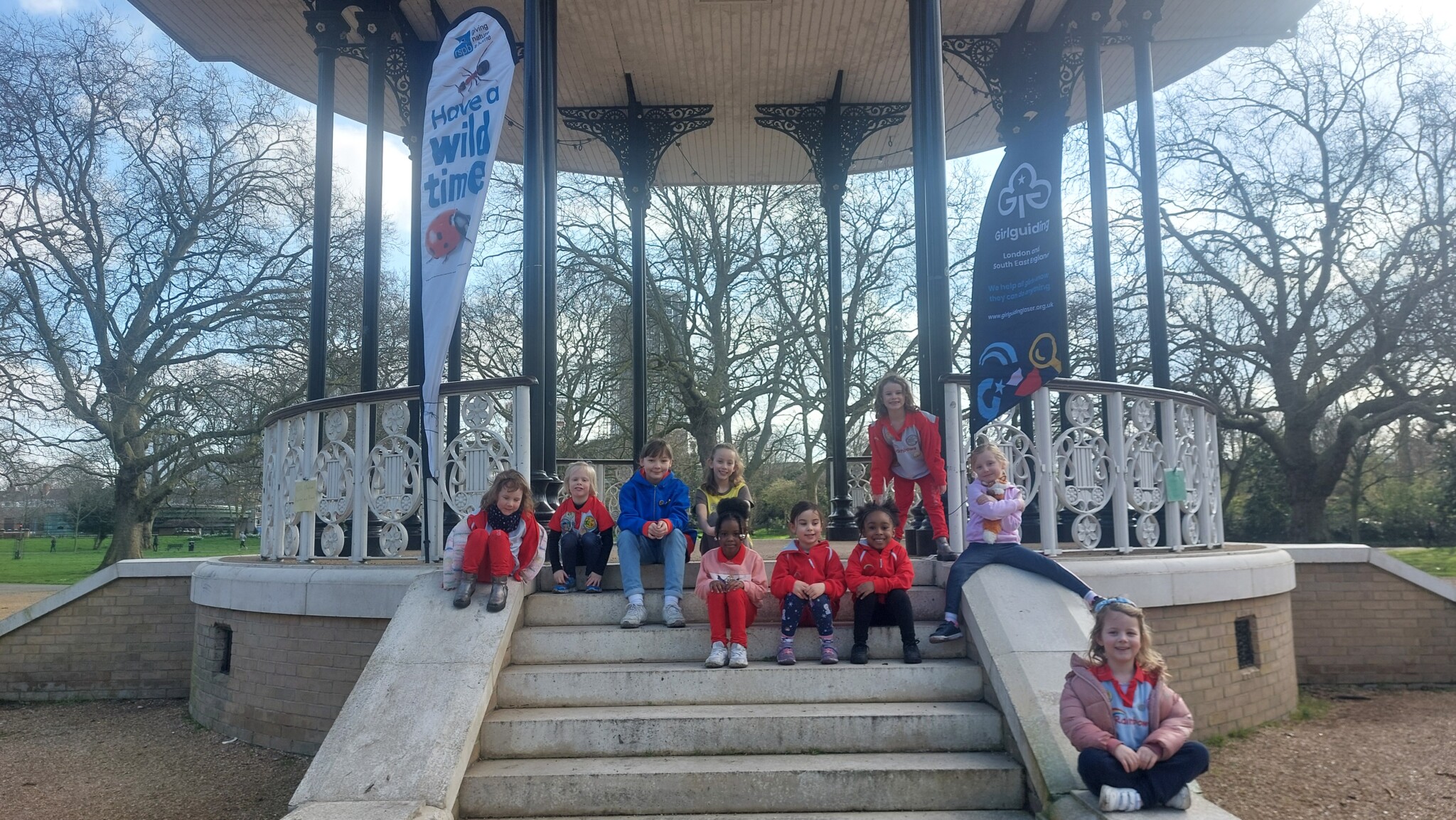 A healthy early spring gathering of 75 Rainbows, Brownies and their leaders from across London visited Southwark Park to discover the nature on their doorstep.
