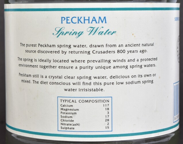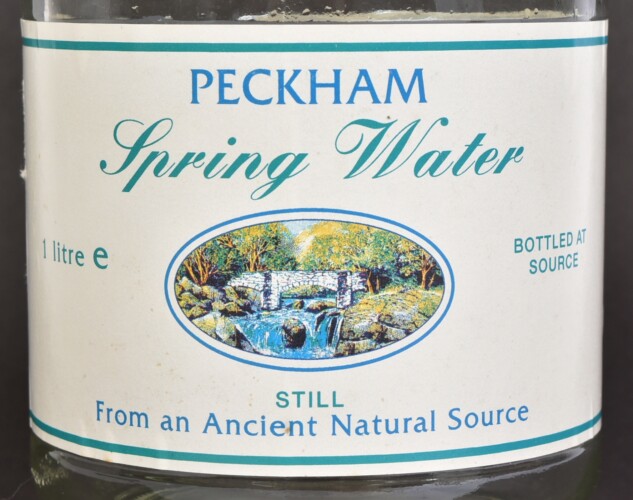 Pictured top: The bottle of Peckham Springs Water to be auctioned off in December (Picture: Auctioneum ltd)