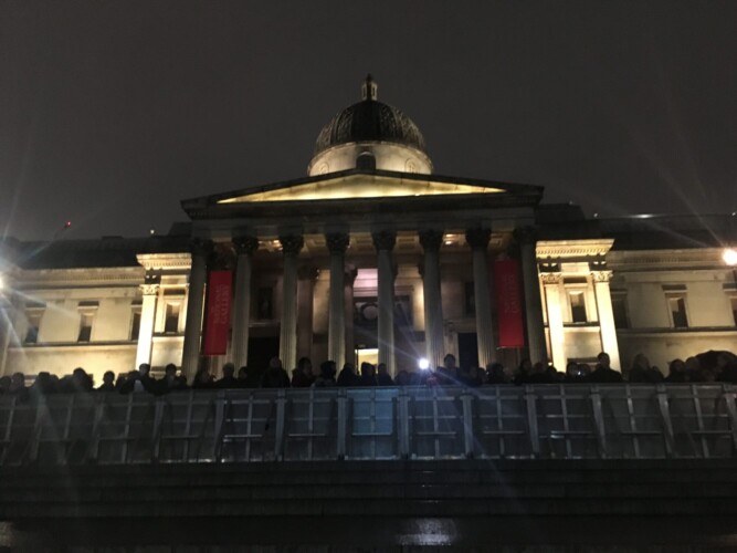 Pictured top, and inset: People gather in Trafalgar Square last year