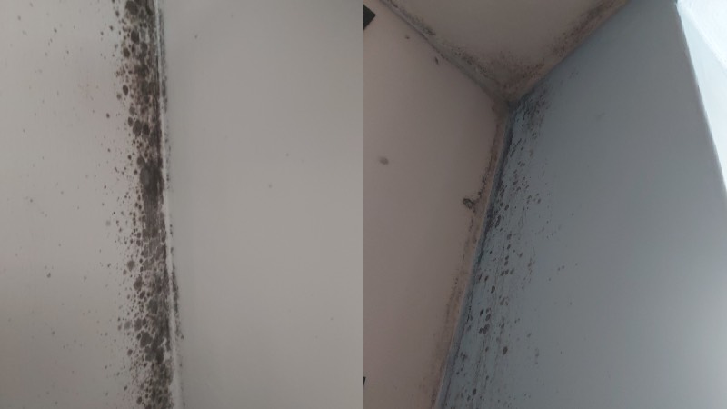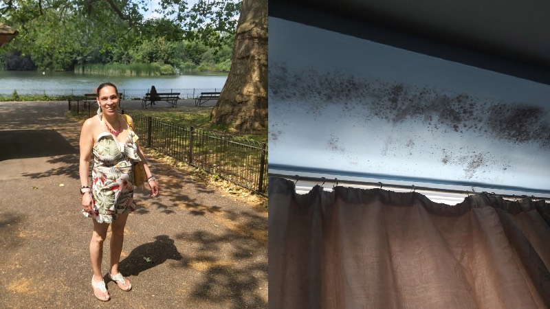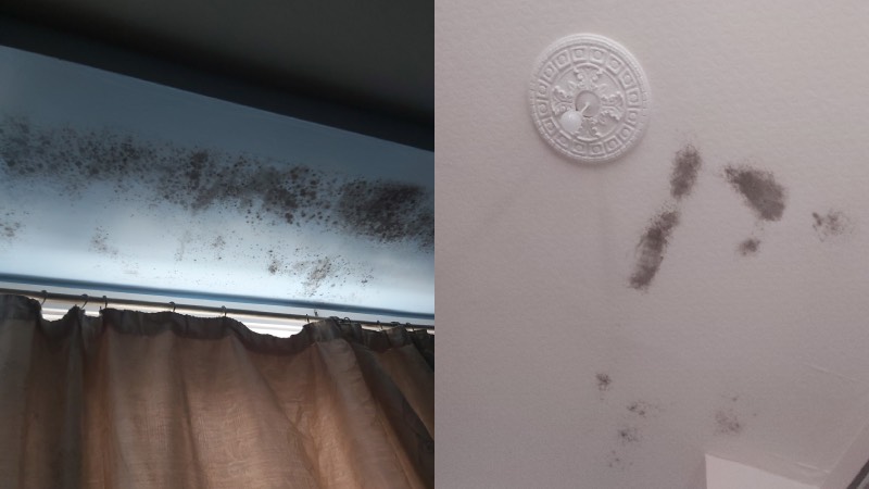 She said that her son sleeps in the living room which is covered in mould and has started getting constant headaches.