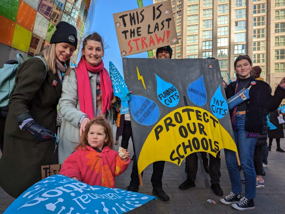The day of action, organised by the National Education Union (NEU), was called by teachers demanding pay in line with soaring inflation, properly funded schools and better working conditions.