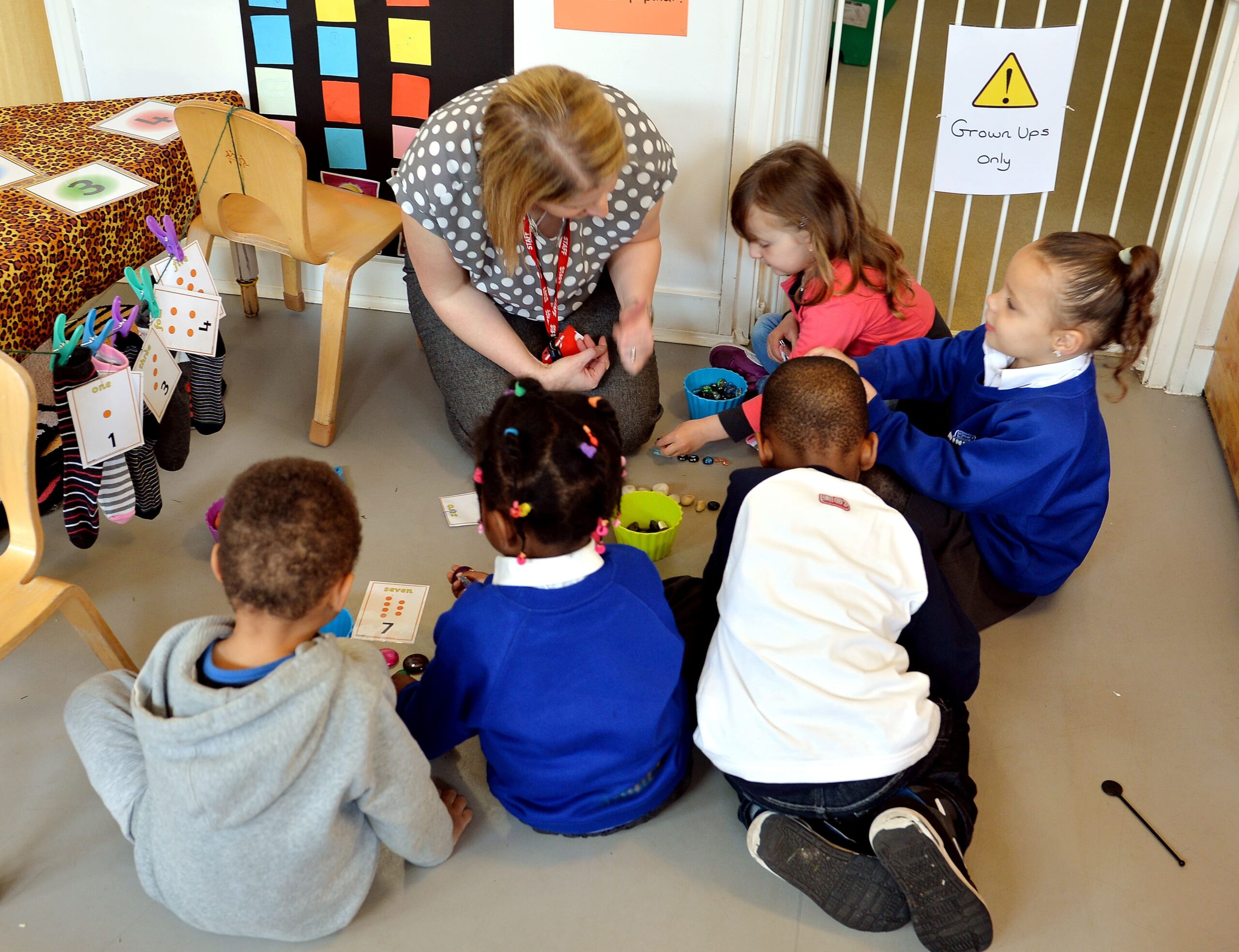 Pictured top: Children and a teacher at the Windrush Nursery in Greenwich (Picture: PA)