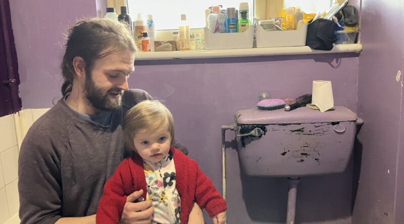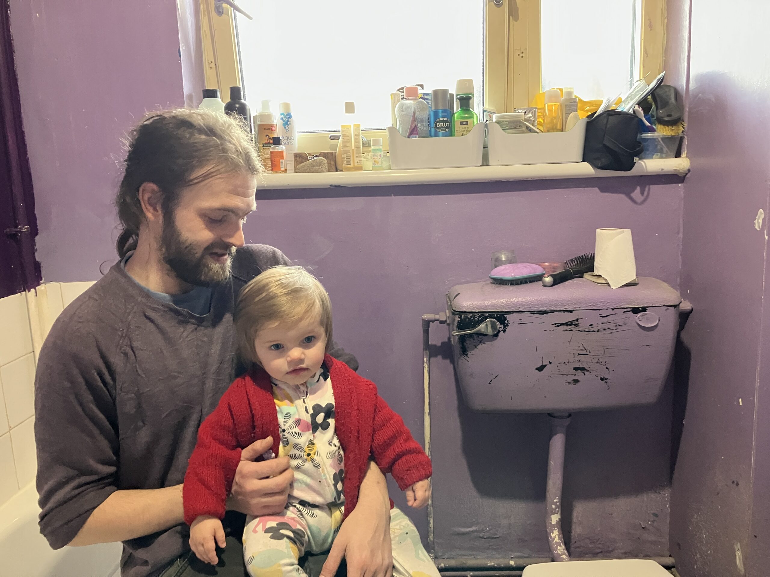 Pictured top: Richard Smith with his daughter Luna in the bathroom of their Plumstead flat (Picture: Joe Coughlan)