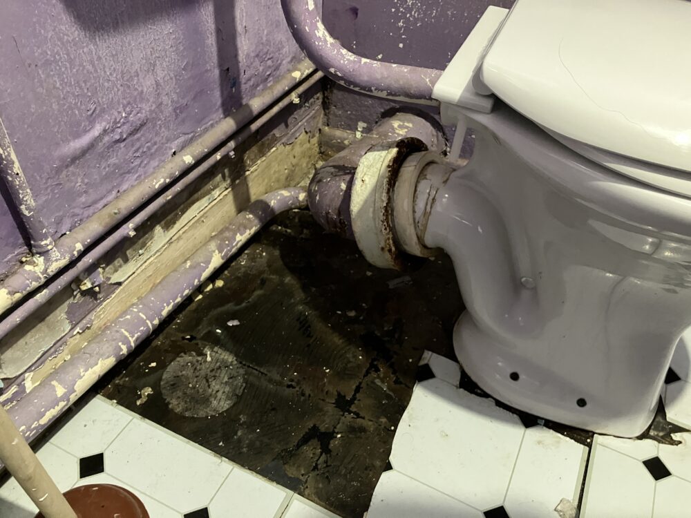 The dad has lived in the flat since 2010 and noticed corrosion on the pipes for the toilet and bath since moving in.